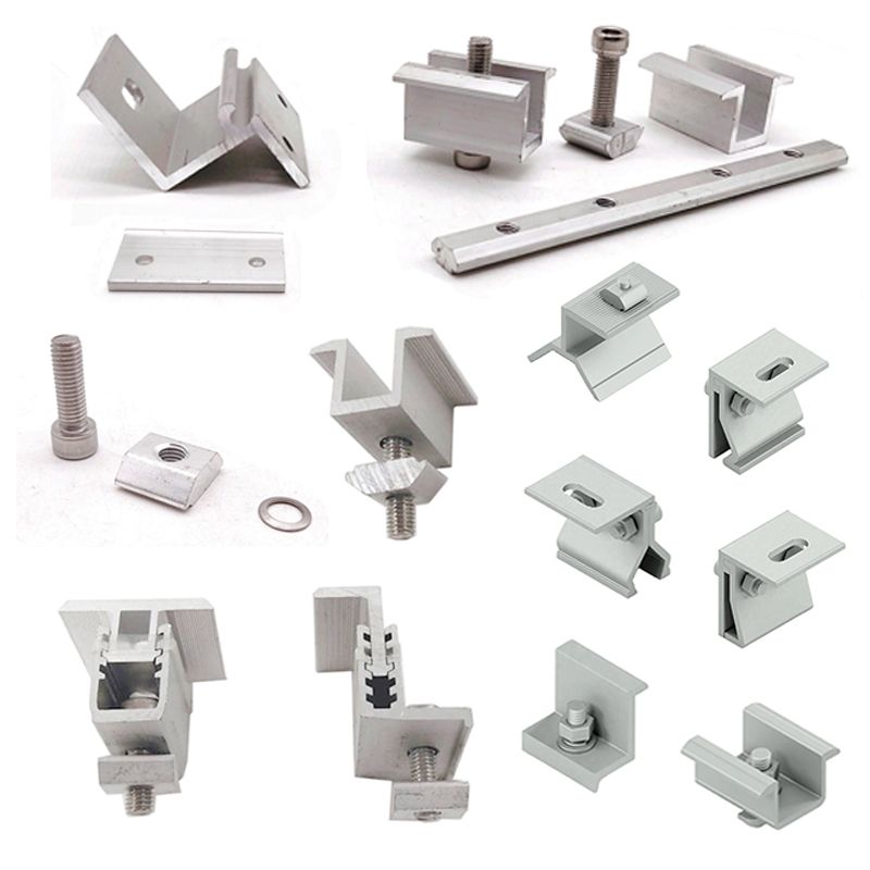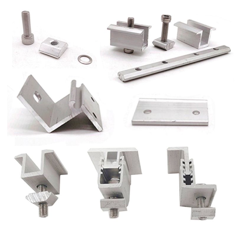 Алуминиумските шини играат клучна улога во системите за монтирање на соларна енергија бидејќи се користат за цврсто потпора на соларни панели на хоризонтална површина. Алуминиумските шини имаат висока јачина и отпорност на корозија и можат со сигурност да издржат сили како што се тежината на соларните панели и надворешниот притисок на ветерот. Средната клешта и крајната клешта се додатоци кои се користат за поврзување на алуминиумски шини и соларни панели, обично составени од два аголни делови од алуминиумска легура. Тие обезбедуваат дополнителна поддршка и стабилност, обезбедувајќи соларните панели да останат сигурни во вертикална или хоризонтална ориентација. Соларната клешта е уште еден важен додаток од легура на алуминиум, кој се користи за прицврстување на соларни панели на алуминиумски шини. Овие соларни стеги нудат висока јачина и отпорност на корозија за сигурно да ги заштитат соларните панели од оштетување или деформација.